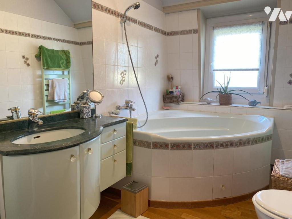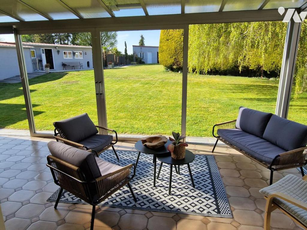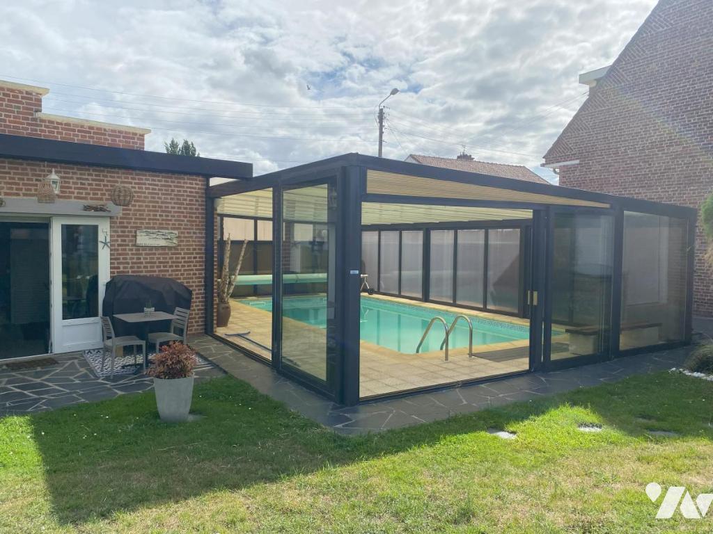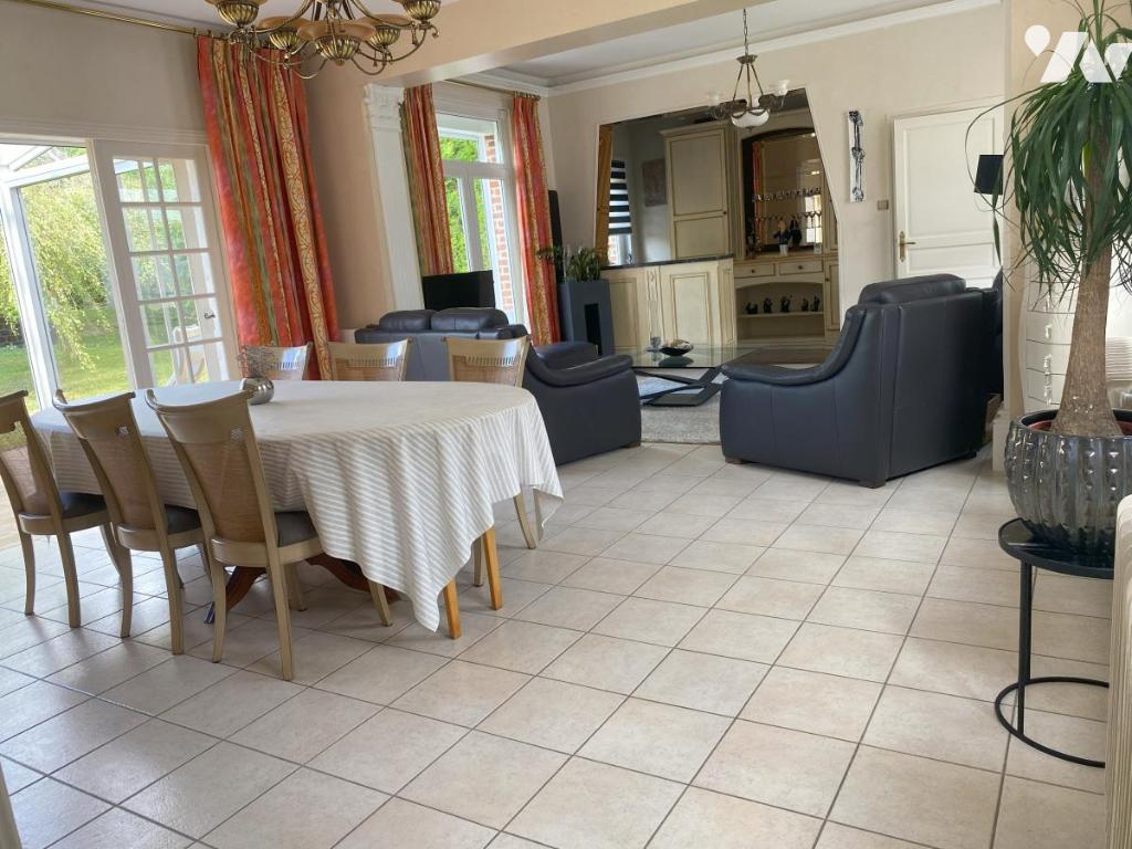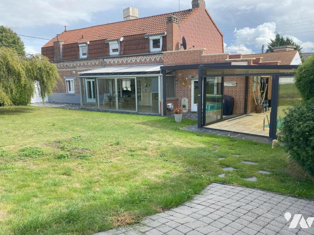 VITRY EN ARTOIS - Maison individuelle comprenant : s/cave - Au RDC : entrée, bureau, séjour-salon spacieux avec coin bar, cuisine équipée, cellier, véranda - A l'étage : palier, 3 chambres, salle de bains - C/C gaz - Piscine couverte - Garage, atelier - Grand garage avec accès sur l'arrière d'environ 120 m² - Jardin arboré clos - S/1046 m²